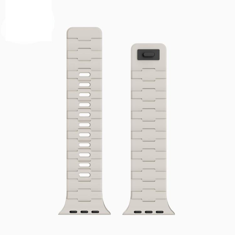 For Apple Watch 46mm / 49mm / 45mm / 44mm Horse-Embossed Single-Pin Magnetic Silicone Watch Band(Starlight)