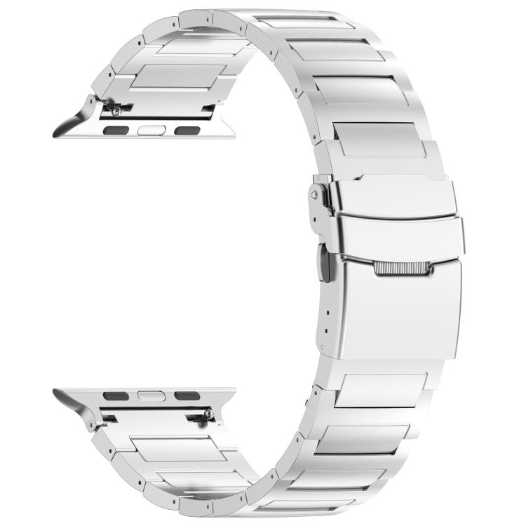 For Apple Watch 46mm / 49mm / 45mm / 44mm I-shaped Quick-release Safety Clasp Titanium Alloy Watch Band(Silver)