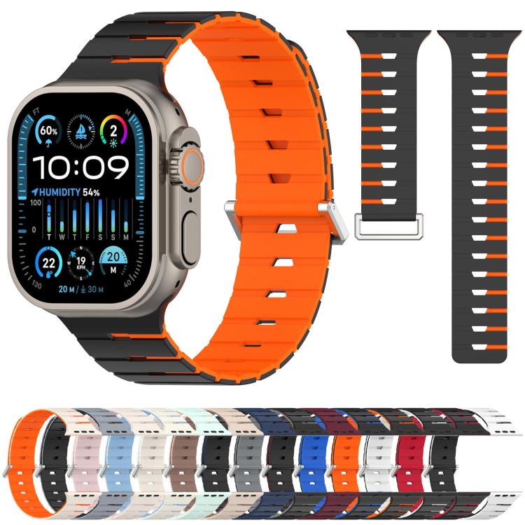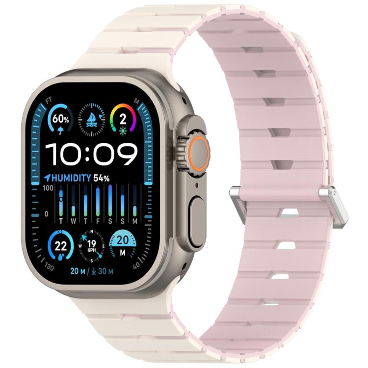 For Apple Watch 46mm / 49mm / 45mm / 44mm Melodica-Style Magnetic Dual-Color Silicone Watch Band(Starlight Oxford Pink)