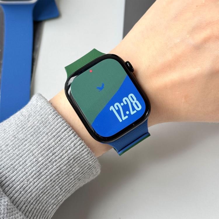 For Apple Watch 46mm / 49mm / 45mm / 44mm Two-tone Lychee-textured Magnetic Silicone Watch Band(Blue Green)