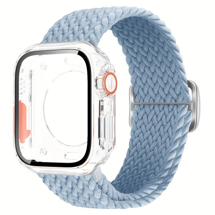 For Apple Watch Series 10 / 11 46mm Ladder Buckle Loop Nylon Watch Band with Change to Ultra 49mm Film PC Cover(Light Blue)