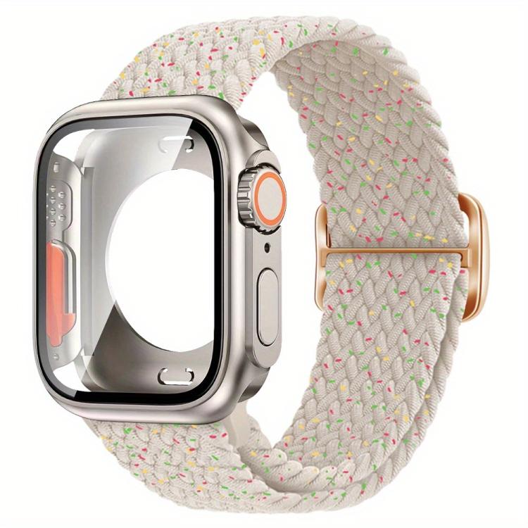 For Apple Watch Series 41mm Ladder Buckle Loop Nylon Watch Band with Change to Ultra 49mm Film PC Cover(Starlight Colorful)