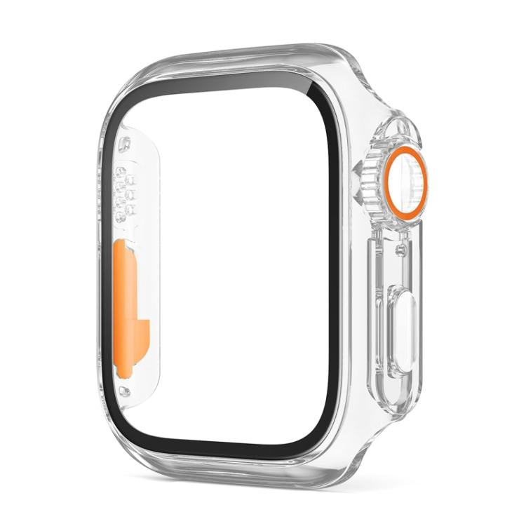 For Apple Watch Series 6 / 5 / 4 / SE 44mm xDfind Change to Ultra 49mm Tempered Glass Film Integrated PC Watch Cover(Transparent+Orange)