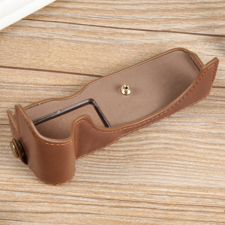 For Canon EOS R50 1/4 inch Thread PU Leather Camera Half Case Base(Coffee)