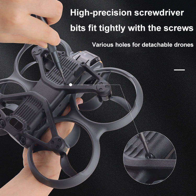 2. Made of aluminum alloy, the high-precision screwdriver bits fit tightly with the screws, and can be disassembled from various control positions of the drone, suitable for almost all drones