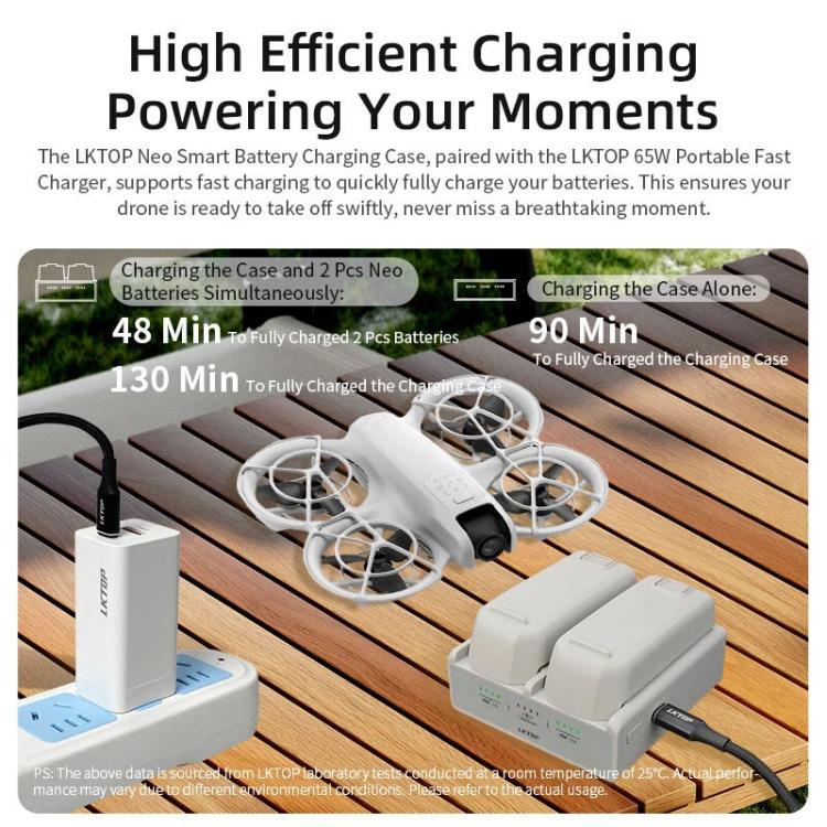 4. With LKTOP 100W car charger fast charging, efficiently replenish energy while traveling, let your Neo drone fully charged in a very fast speed