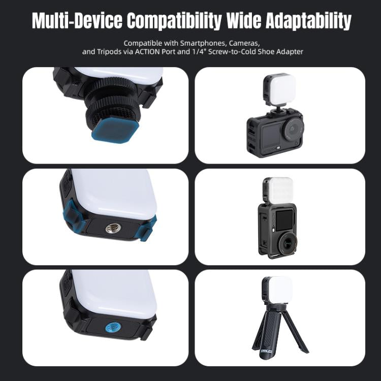 Features1. One-Click Quick Release, Universal Compatibility: Designed specifically for the ACTION quick-release ecosystem, it features both a 1/4-inch screw hole and a cold shoe adapter, allowing for seamless switching between DJI ACTION/NANO/360 action cameras, cameras, desktops, tripods, and handheld use, adapting to most shooting scenarios.