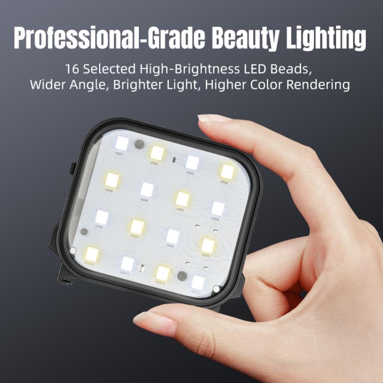 2. Soft Light and Beauty Enhancement, Radiant Complexion: Built-in high-CRI LED beads and an external soft light diffuser transform harsh direct light into even, soft diffused light, naturally brightening skin tone and smoothing skin texture for a "physical-level skin smoothing" effect. (The soft light diffuser reduces light directionality, making the transition between highlights and shadows on the skin surface smoother.)