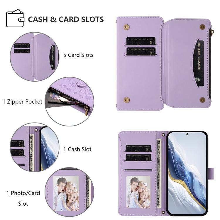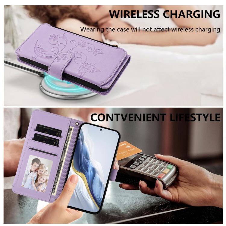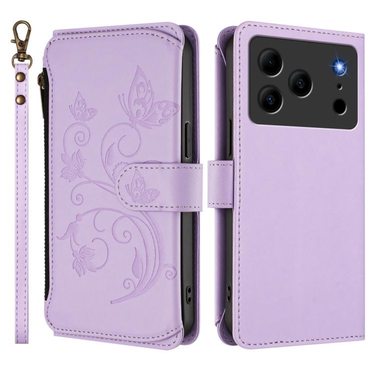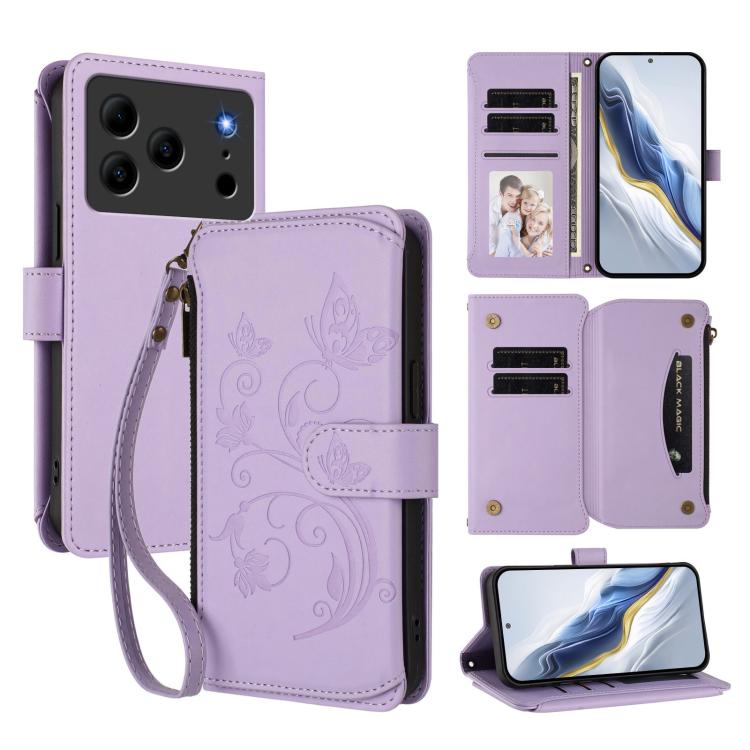 For Doogee Note 56 / Note 56 Pro Butterfly Love Flower Multi-card Zipper Wallet Leather Phone Case(Light Purple)