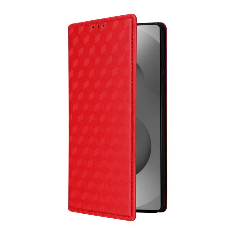 For For Samsung Galaxy S26 Ultra 5G Cubic Grid Texture Flip Leather Phone Case(Red)