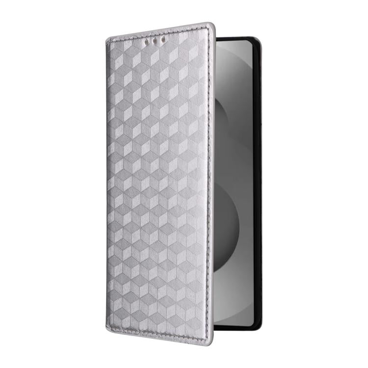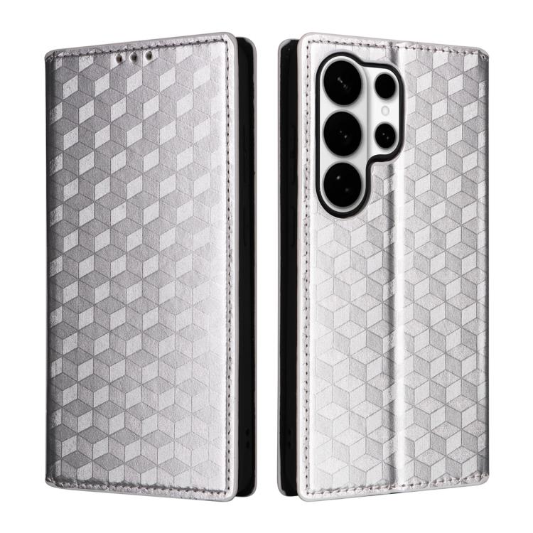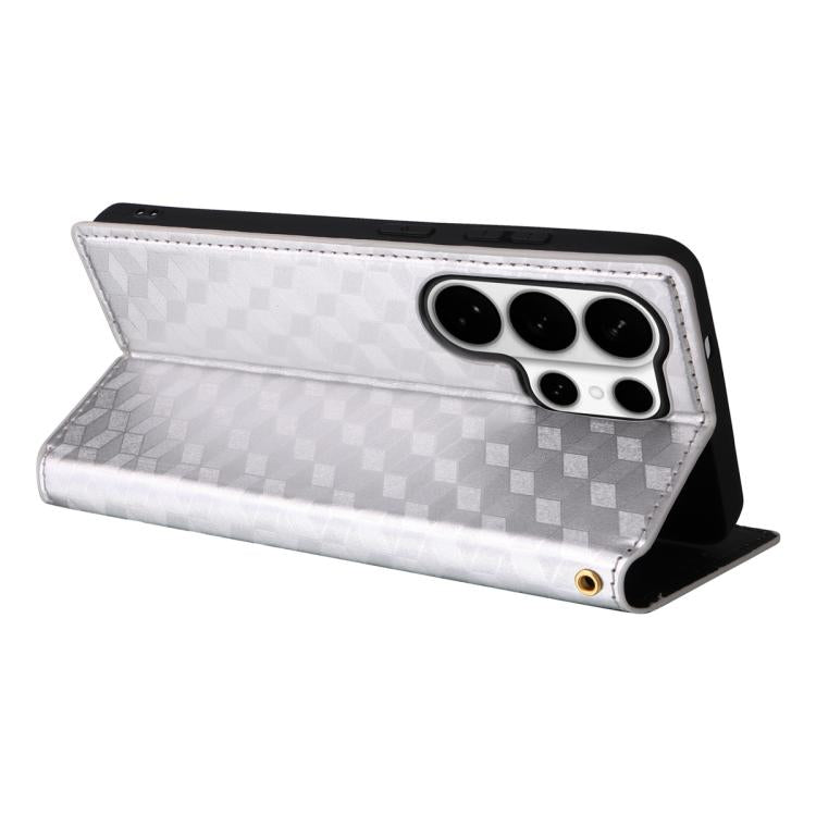 For For Samsung Galaxy S26 Ultra 5G Cubic Grid Texture Flip Leather Phone Case(Silver)