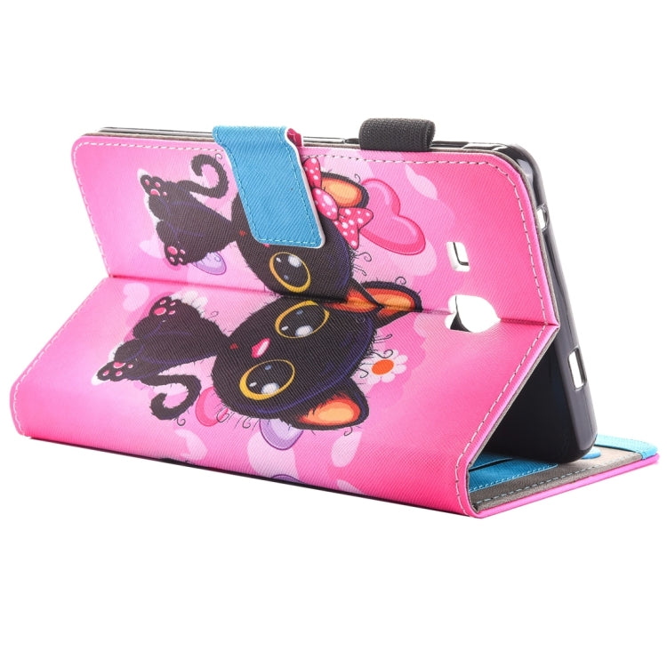 For Galaxy Tab A 7.0 (2016) / T280 Lovely Cartoon Cat Couple Pattern Horizontal Flip Leather Case with Holder & Card Slots & Pen Slot