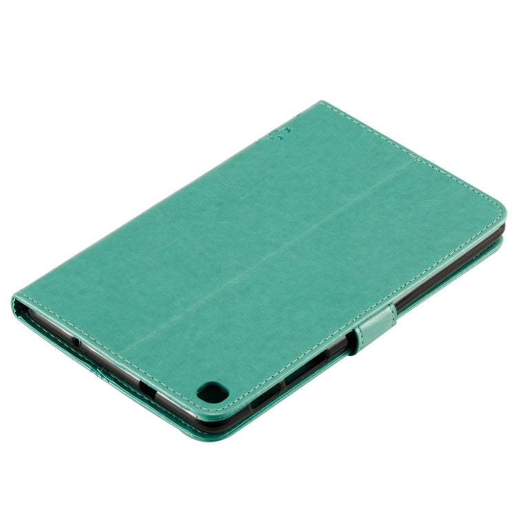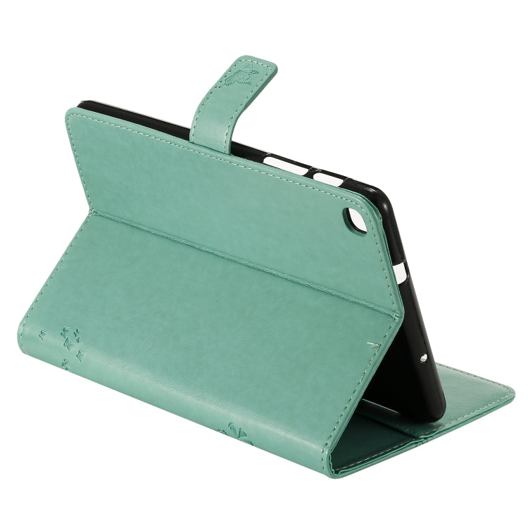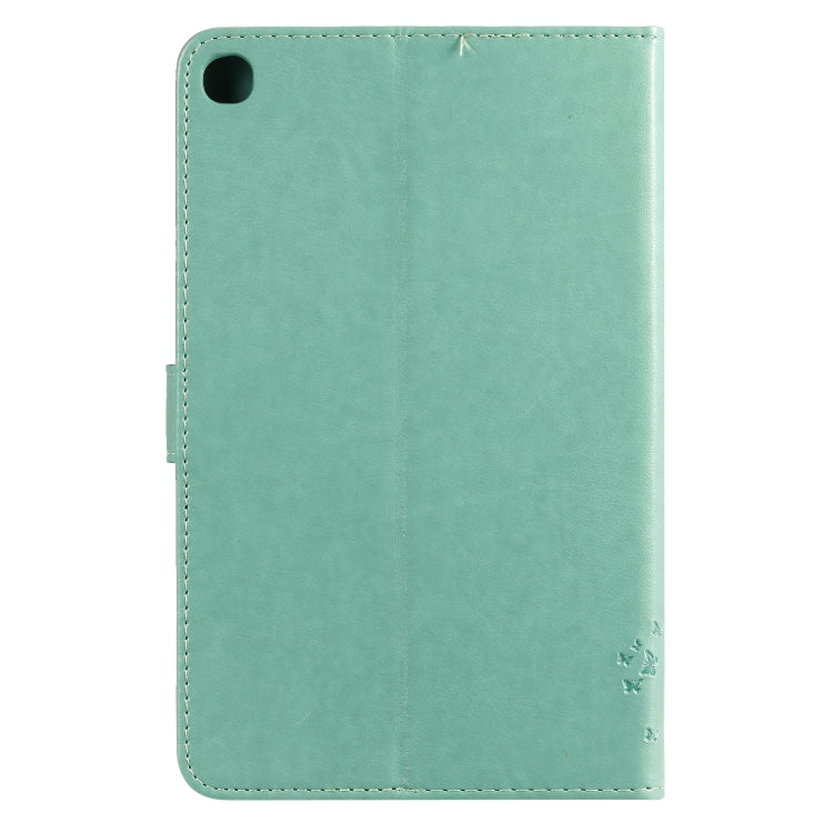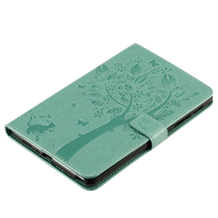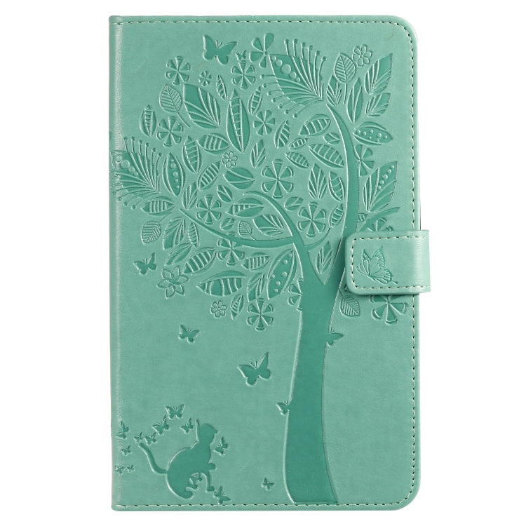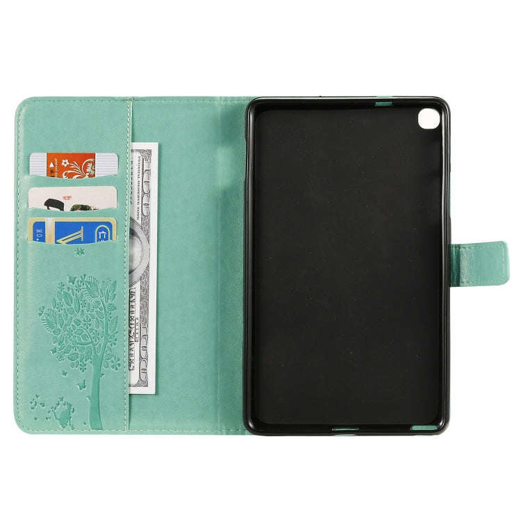 For Galaxy Tab A 8.0 & S Pen (2019) Pressed Printing Cat and Tree Pattern Horizontal Flip Leather Case with Holder & Card Slots & Wallet(Green)