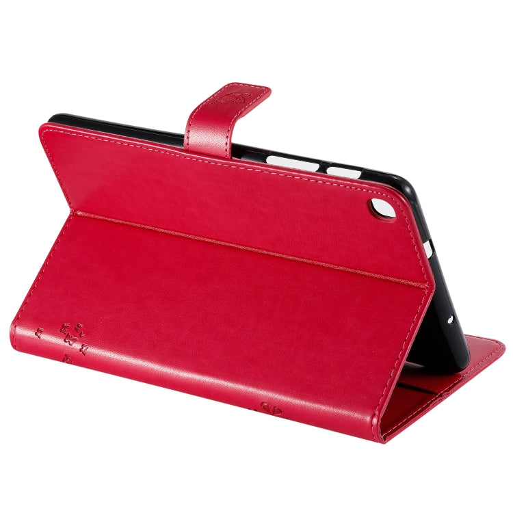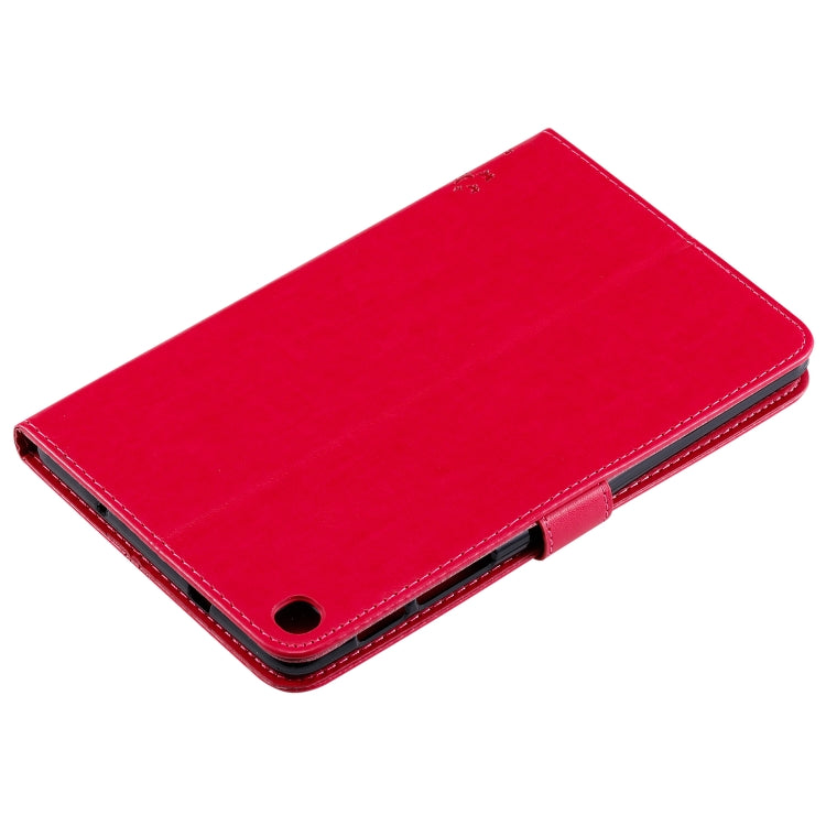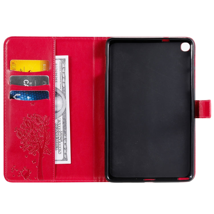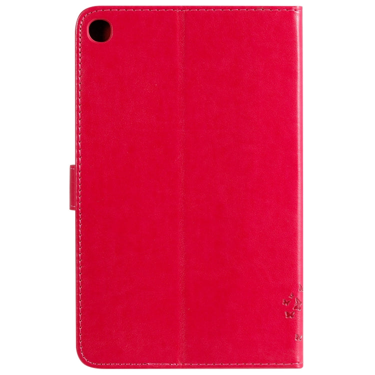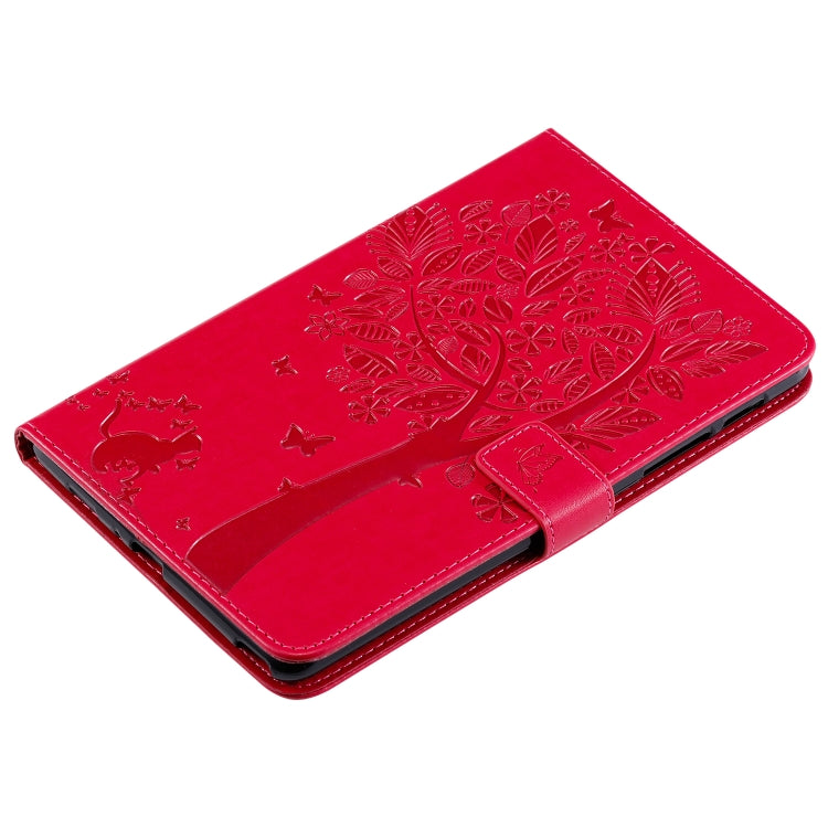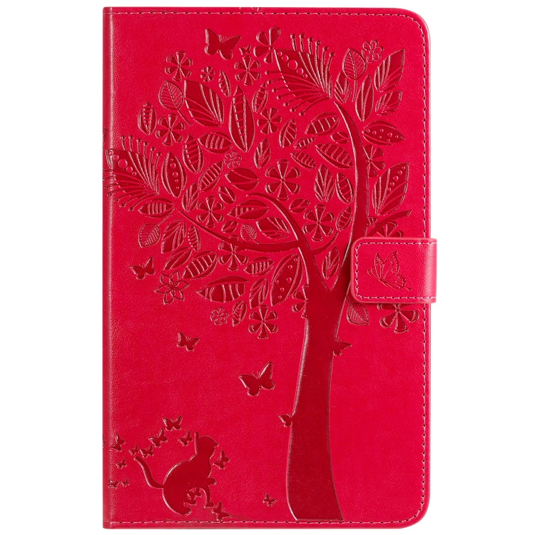 For Galaxy Tab A 8.0 & S Pen (2019) Pressed Printing Cat and Tree Pattern Horizontal Flip Leather Case with Holder & Card Slots & Wallet(Rose Red)