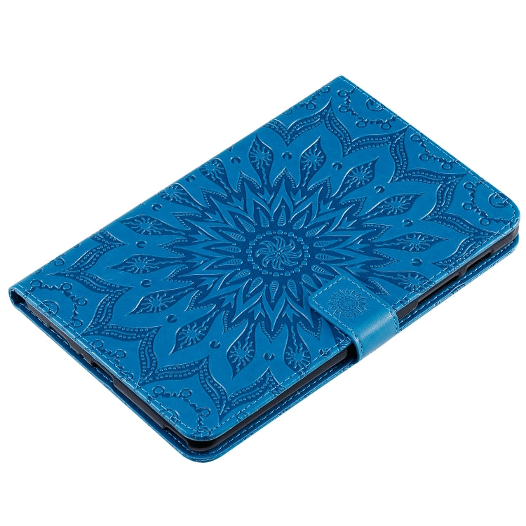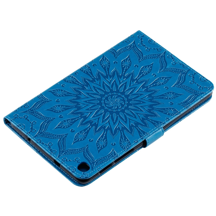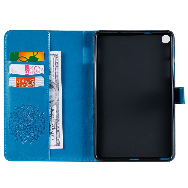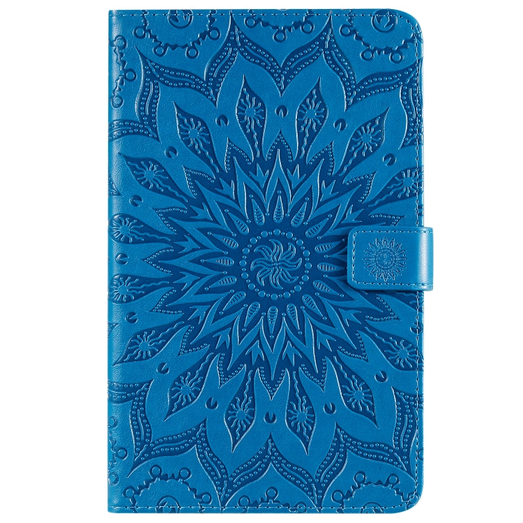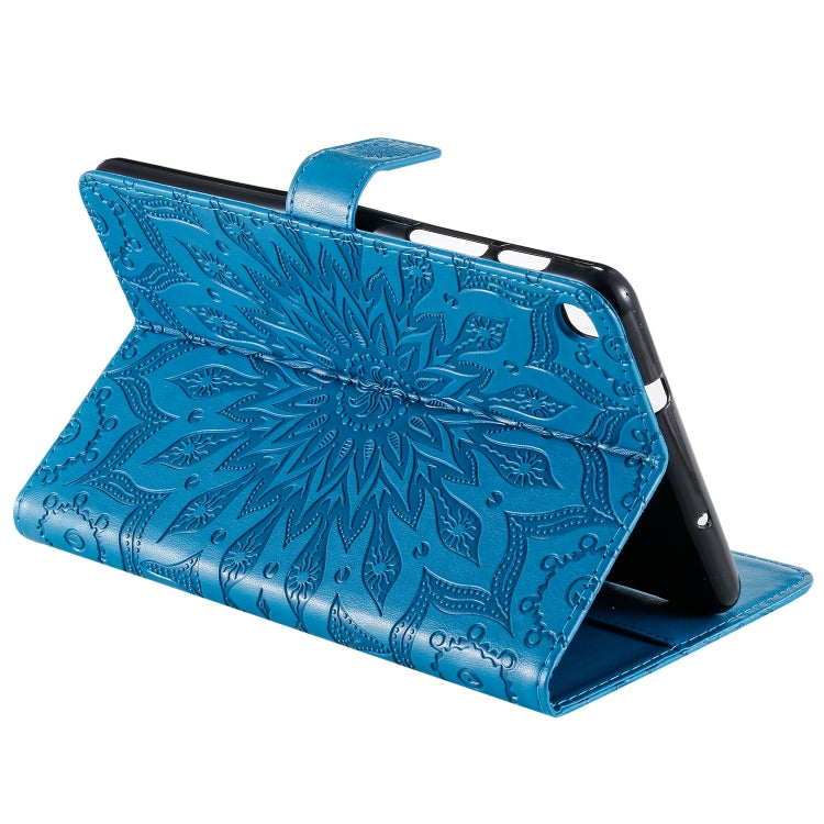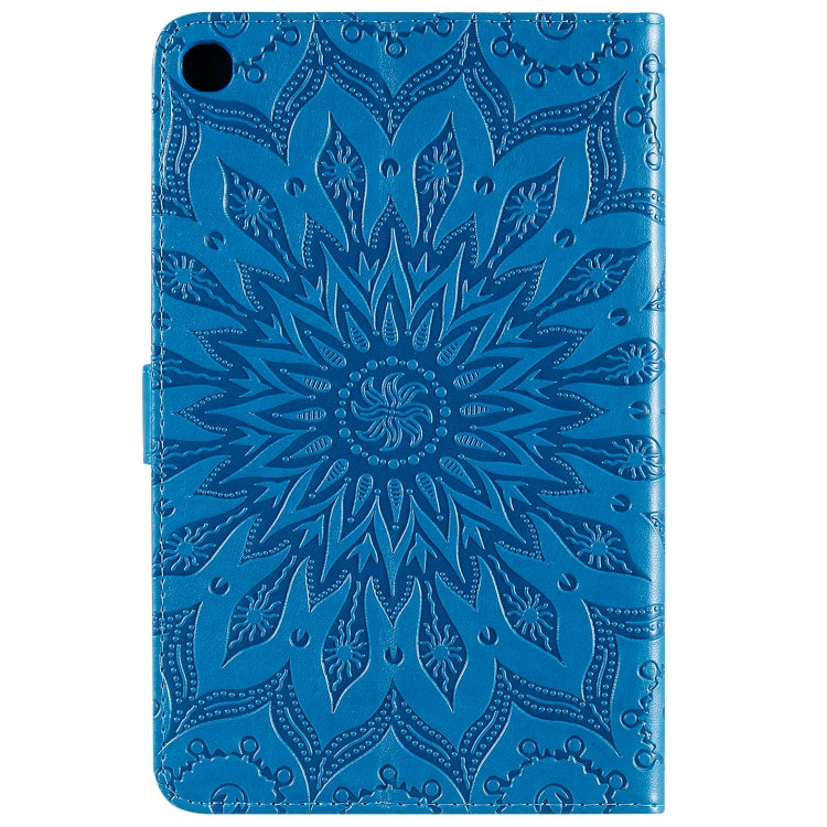 For Galaxy Tab A 8.0 & S Pen (2019) Pressed Printing Sun Flower Pattern Horizontal Flip Leather Case with Holder & Card Slots & Wallet(Blue)