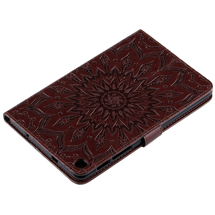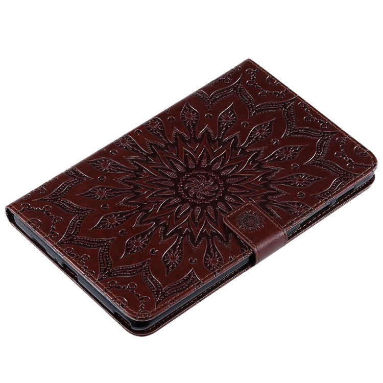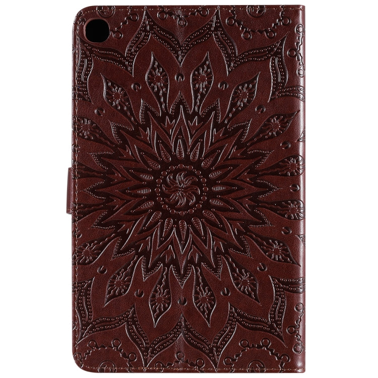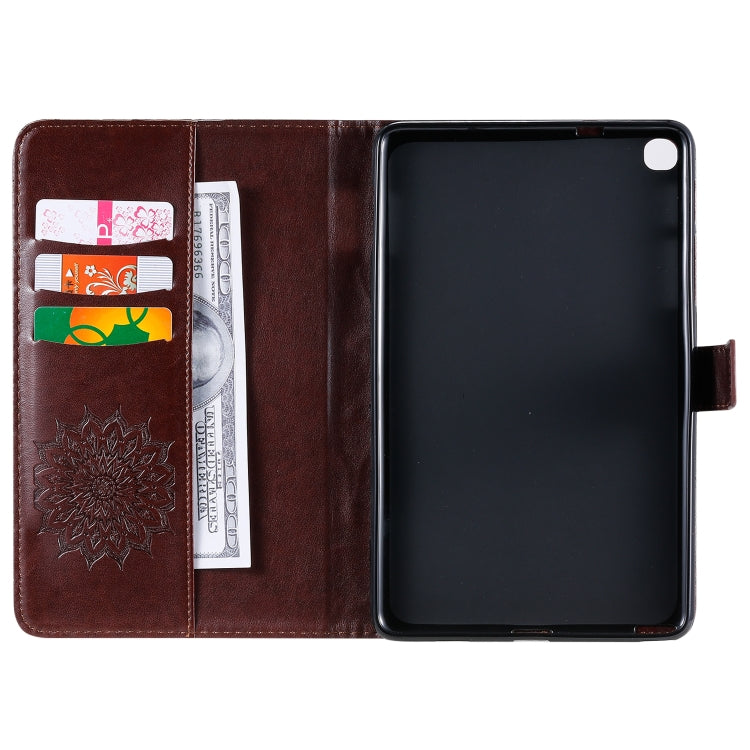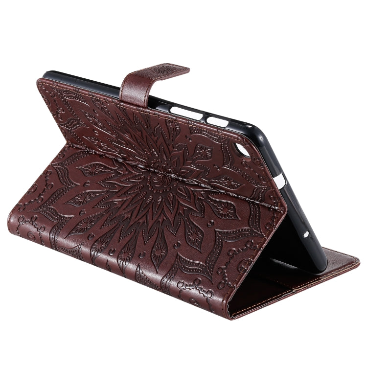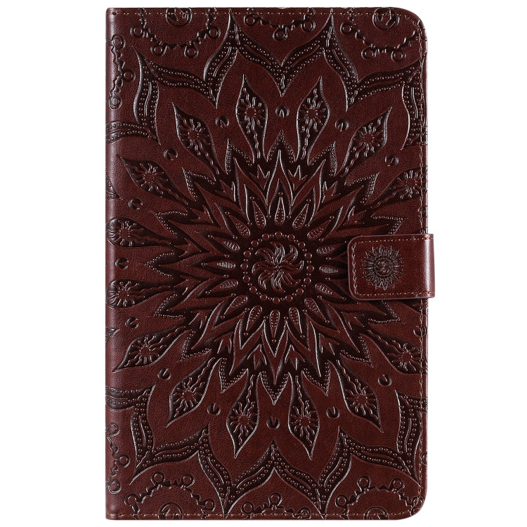 For Galaxy Tab A 8.0 & S Pen (2019) Pressed Printing Sun Flower Pattern Horizontal Flip Leather Case with Holder & Card Slots & Wallet(Brown)