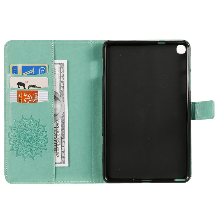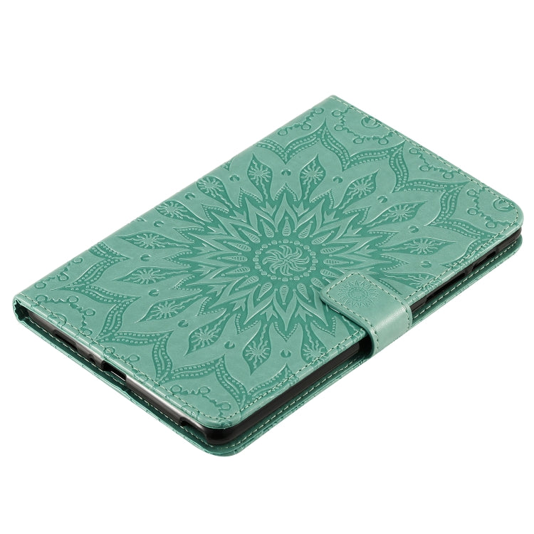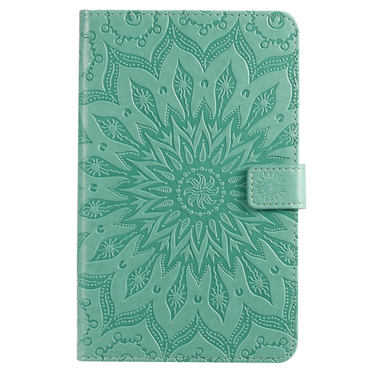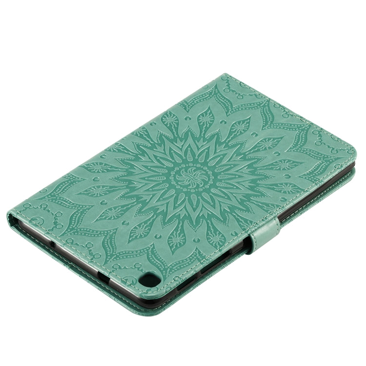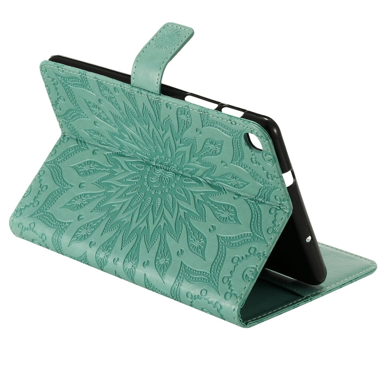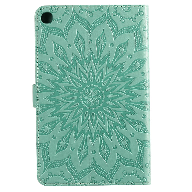For Galaxy Tab A 8.0 & S Pen (2019) Pressed Printing Sun Flower Pattern Horizontal Flip Leather Case with Holder & Card Slots & Wallet(Green)