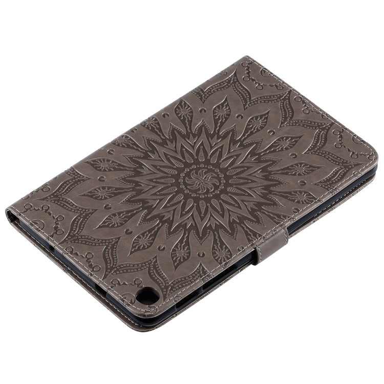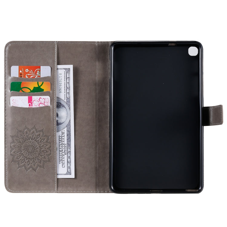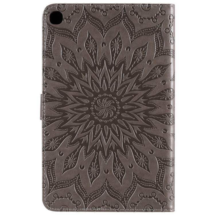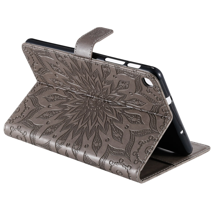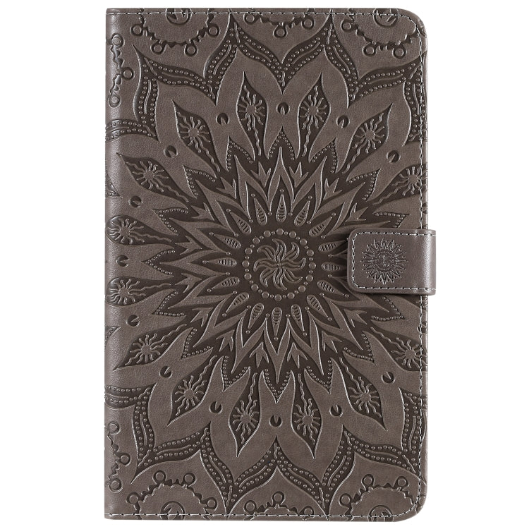 For Galaxy Tab A 8.0 & S Pen (2019) Pressed Printing Sun Flower Pattern Horizontal Flip Leather Case with Holder & Card Slots & Wallet(Grey)