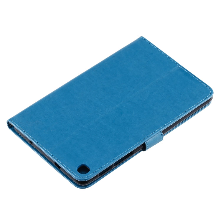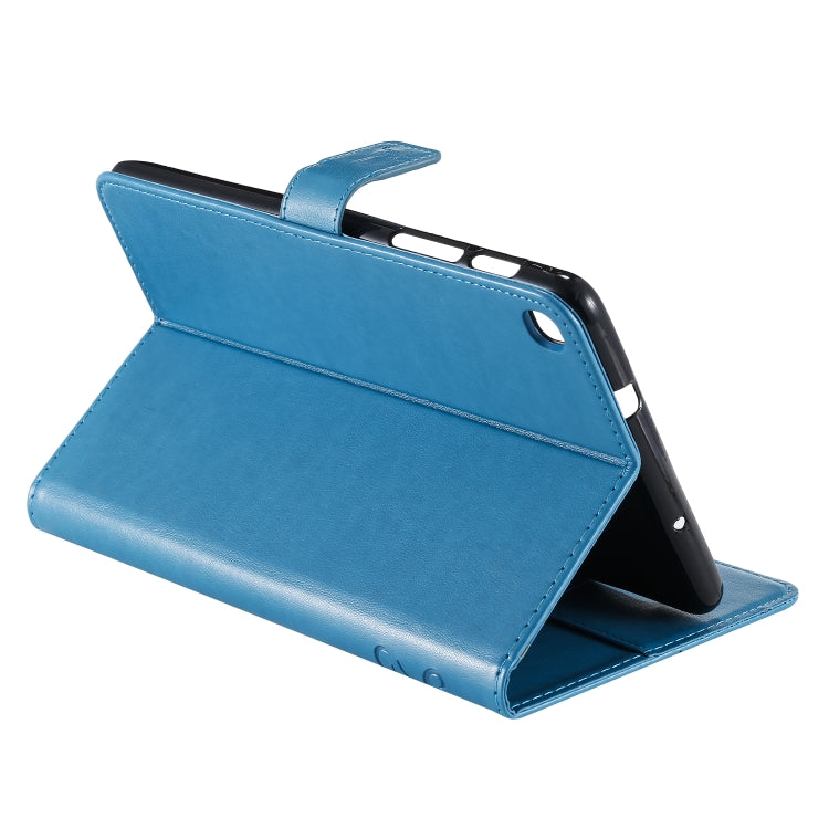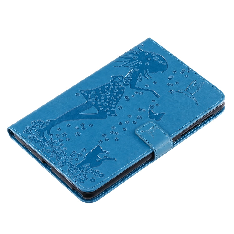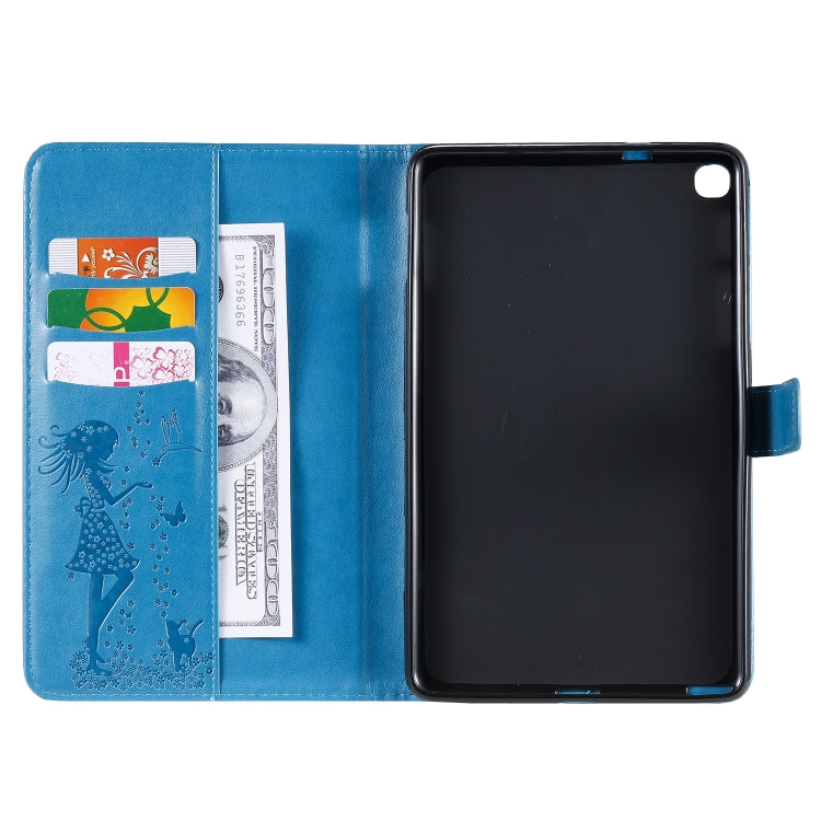 For Galaxy Tab A 8.0 & S Pen (2019) Pressed Printing Woman and Cat Pattern Horizontal Flip Leather Case with Holder & Card Slots & Wallet(Blue)