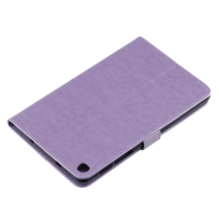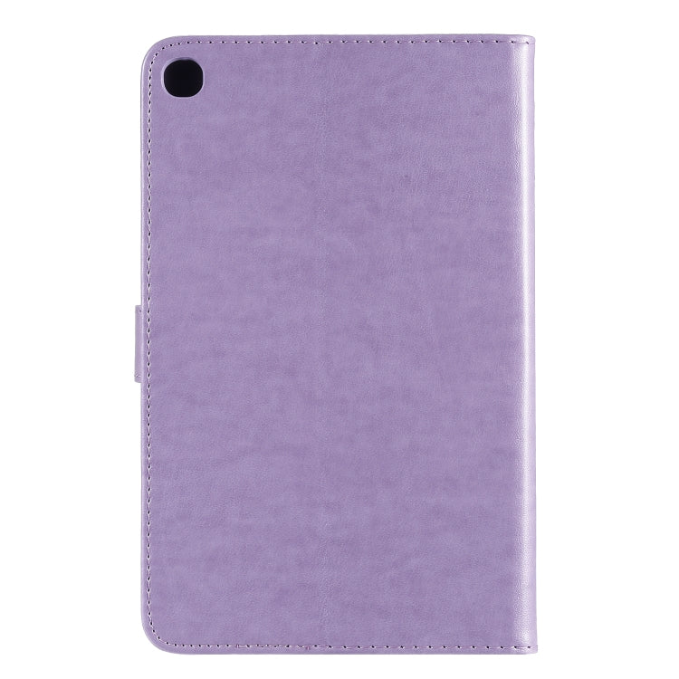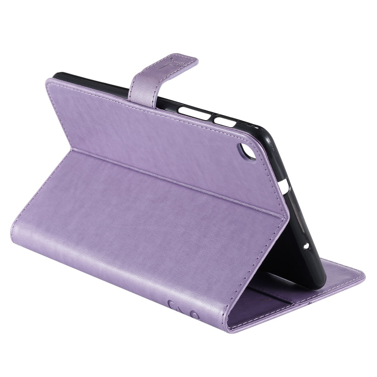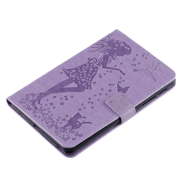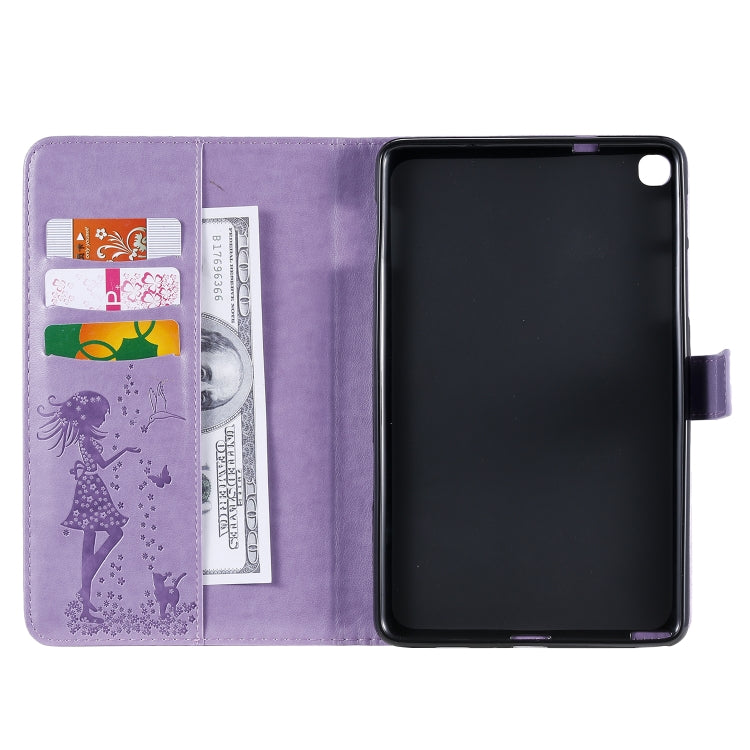 For Galaxy Tab A 8.0 & S Pen (2019) Pressed Printing Woman and Cat Pattern Horizontal Flip Leather Case with Holder & Card Slots & Wallet(Purple)