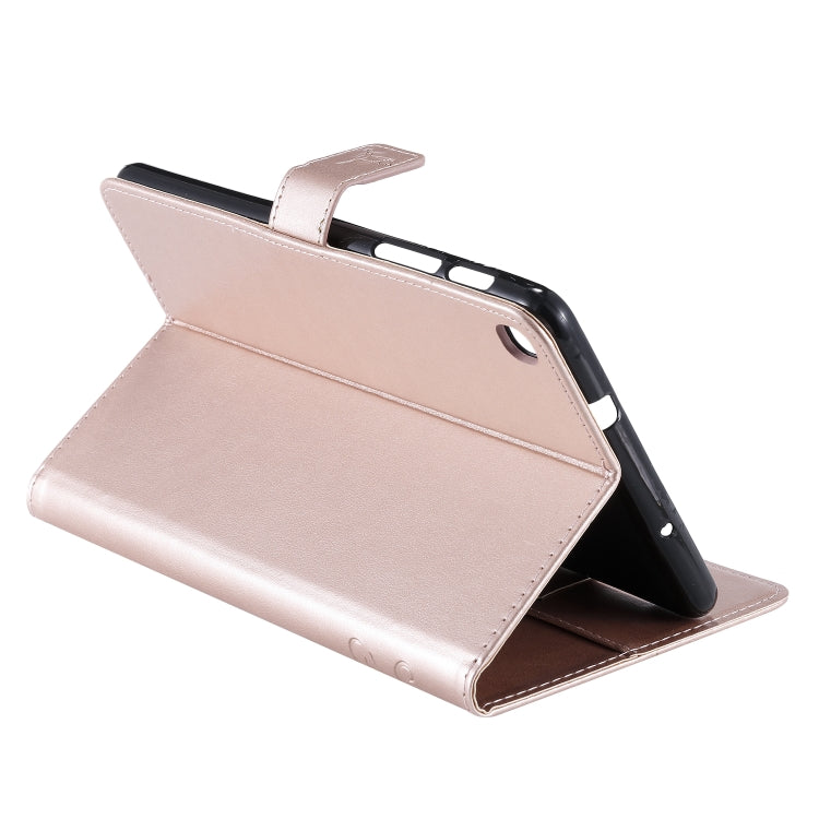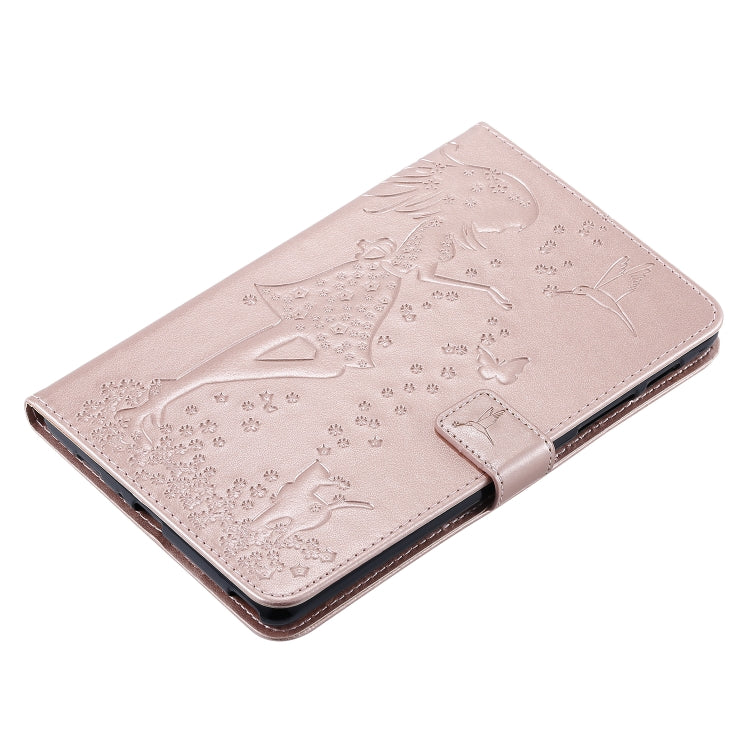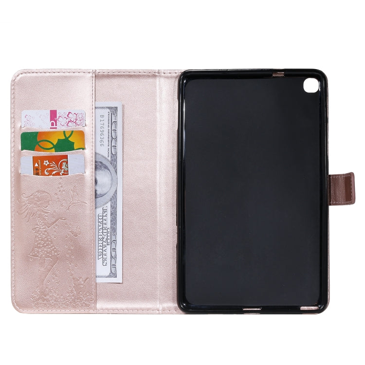 For Galaxy Tab A 8.0 & S Pen (2019) Pressed Printing Woman and Cat Pattern Horizontal Flip Leather Case with Holder & Card Slots & Wallet(Rose Gold)
