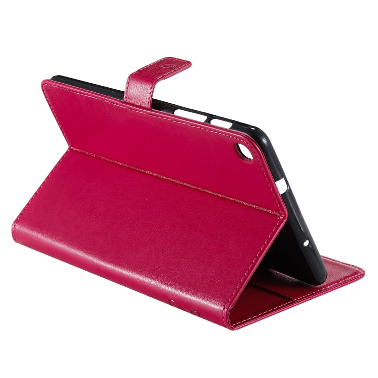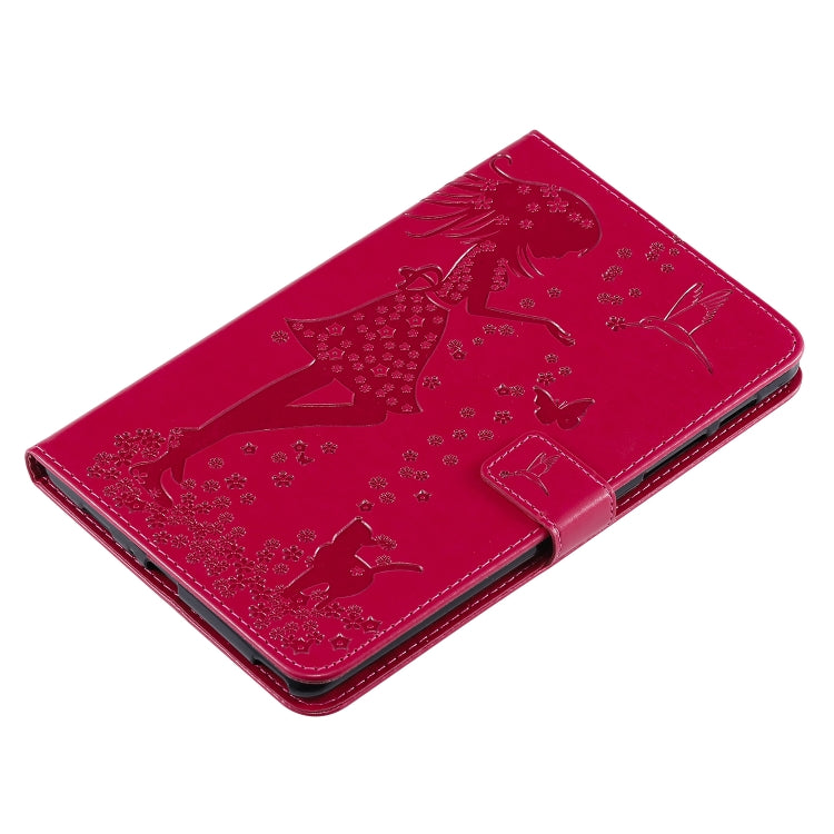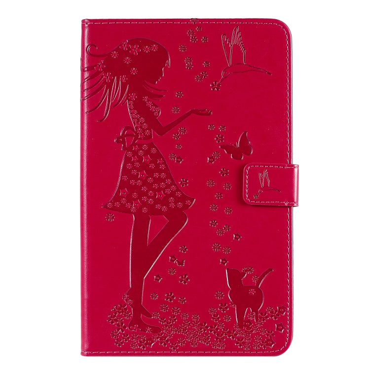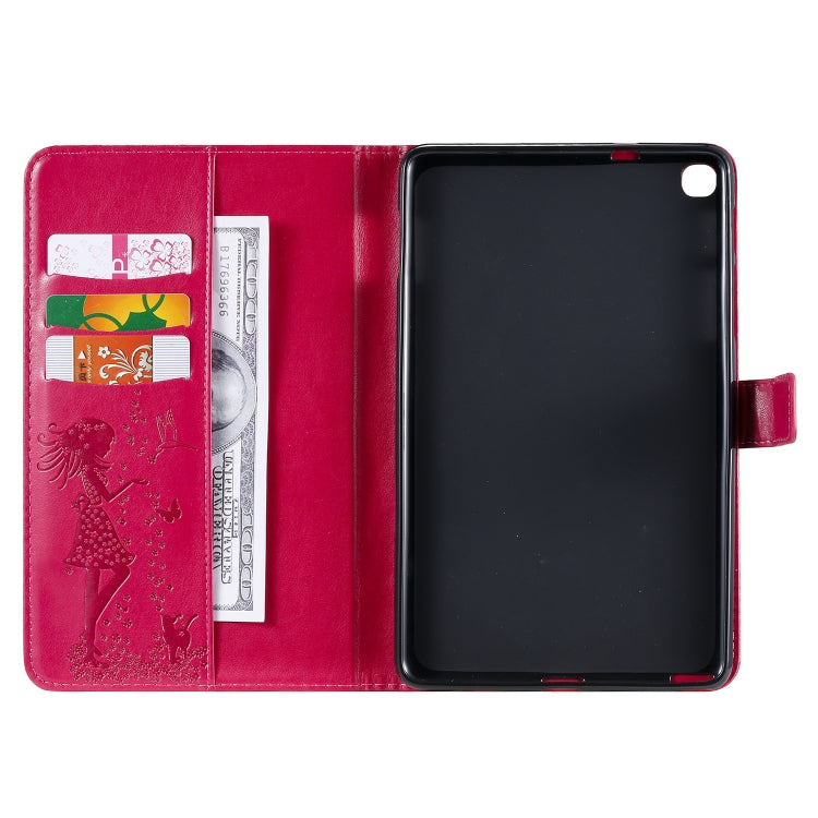 For Galaxy Tab A 8.0 & S Pen (2019) Pressed Printing Woman and Cat Pattern Horizontal Flip Leather Case with Holder & Card Slots & Wallet(Rose Red)