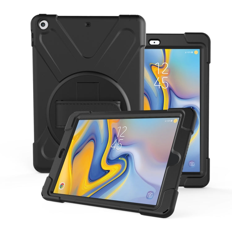 For Galaxy Tab A 8.0 T387(2018) 360 Degree Rotation PC + Silicone Protective Case with Holder & Hand-strap(Black)