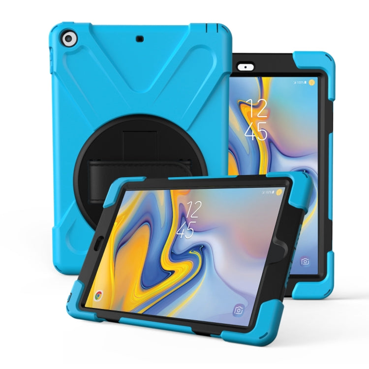 For Galaxy Tab A 8.0 T387(2018) 360 Degree Rotation PC + Silicone Protective Case with Holder & Hand-strap(Light Blue)