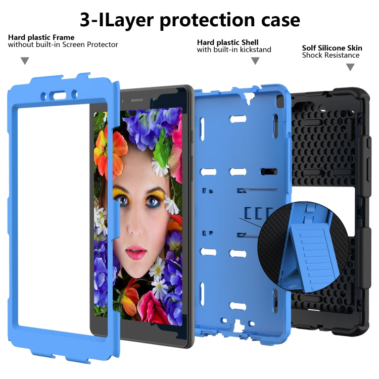 For Galaxy Tab A8.0 2019 / T290 Shockproof Two-Color Silicone Protection Case with Holder(Black+Blue)
