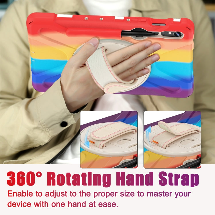 For Galaxy Tab S10 FE / S9 FE / S9 / S8 / S7 Rotatable Kickstand Grip Heavy Duty Hard Rugged Tablet Case(Colorful Red)
