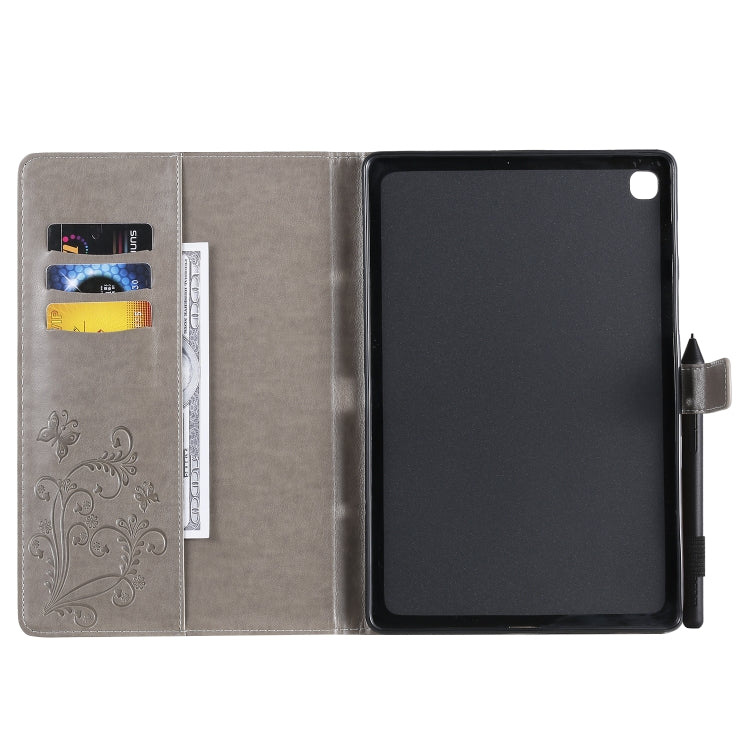 For Galaxy Tab S5e Pressed Printing Butterfly Pattern Horizontal Flip PU Leather Case with Holder & Card Slots & Wallet & Pen Slot(Grey)