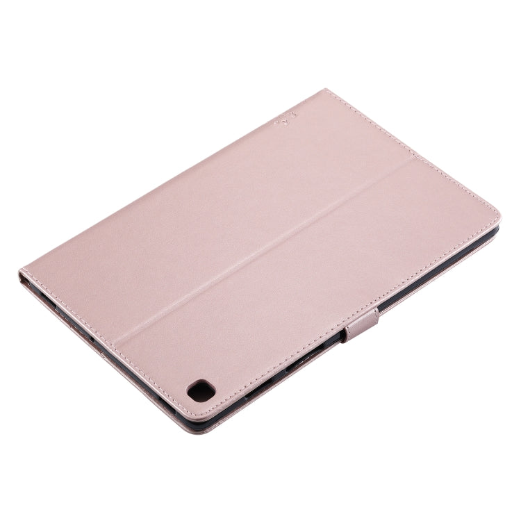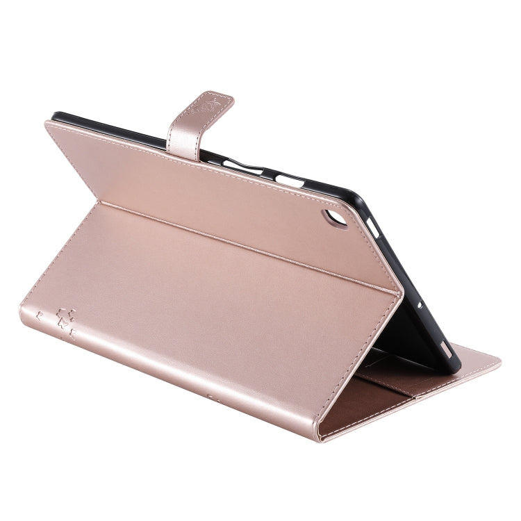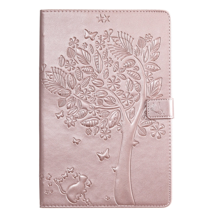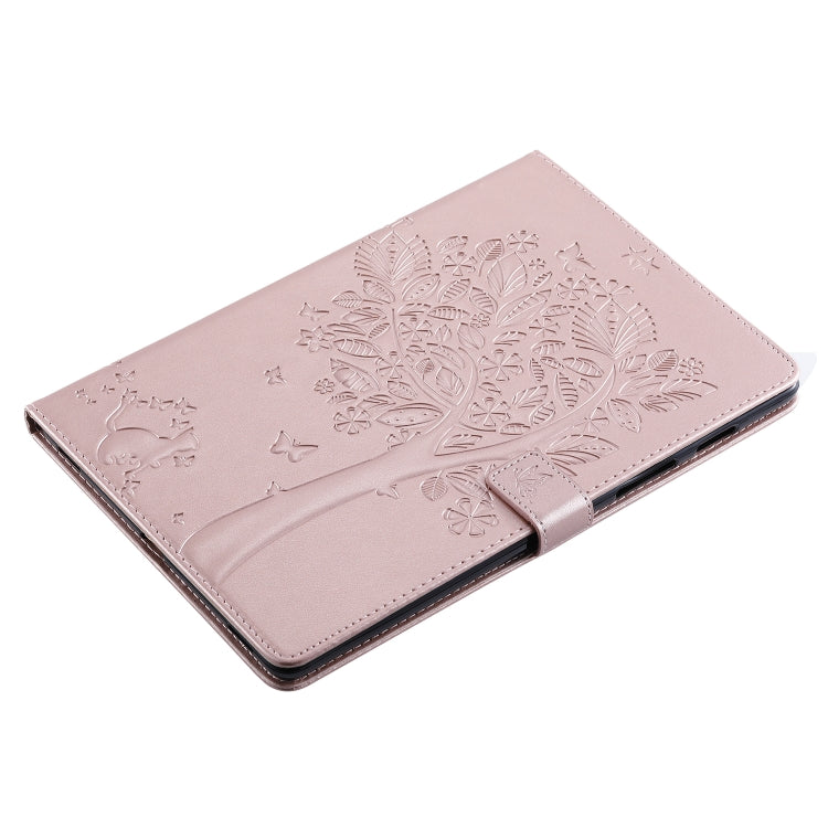 For Galaxy Tab S5e Pressed Printing Cat and Tree Pattern Horizontal Flip Leather Case with Holder & Card Slots & Wallet(Rose Gold)