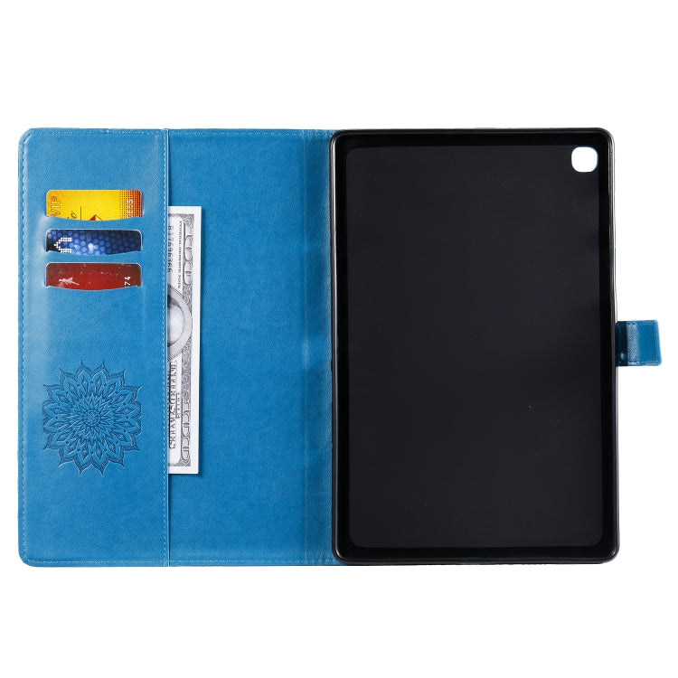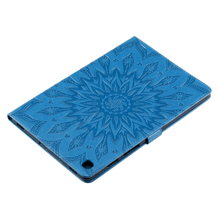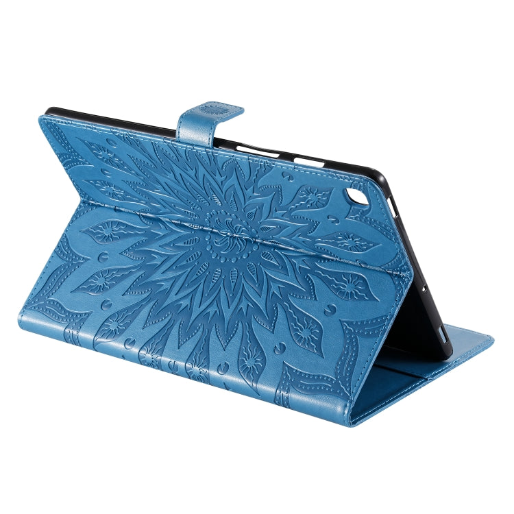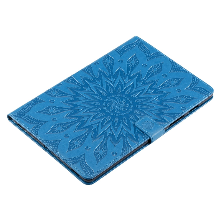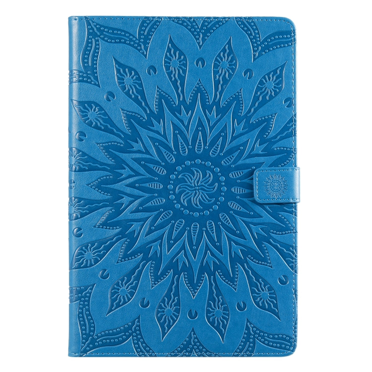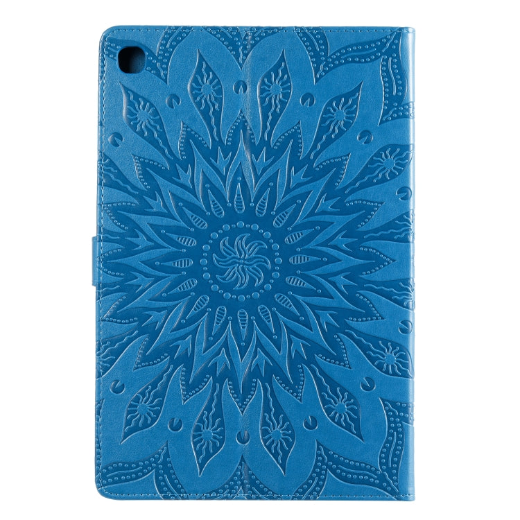 For Galaxy Tab S5e Pressed Printing Sun Flower Pattern Horizontal Flip Leather Case with Holder & Card Slots & Wallet(Blue)