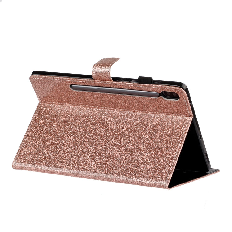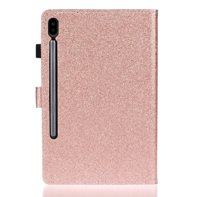 For Galaxy Tab S6 T860 Varnish Glitter Powder Horizontal Flip Leather Case with Holder & Card Slot(Rose Gold)