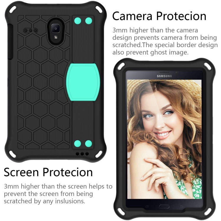 For GalaxyTab A 8.0 (2017)T380 Honeycomb Design EVA + PC Four Corner Anti Falling Flat Protective Shell With Straps(Black+Aqua)