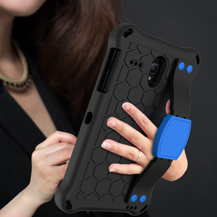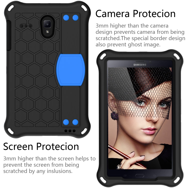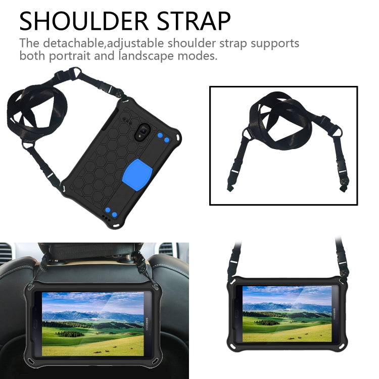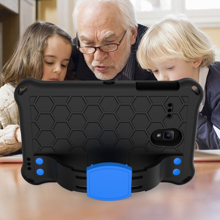 For GalaxyTab A 8.0 (2017)T380 Honeycomb Design EVA + PC Four Corner Anti Falling Flat Protective Shell With Straps(Black+Blue)