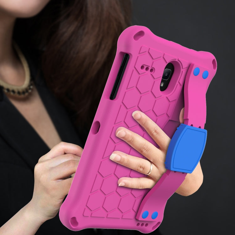 For GalaxyTab A 8.0 (2017)T380 Honeycomb Design EVA + PC Four Corner Anti Falling Flat Protective Shell With Straps(Rose Red+Blue)