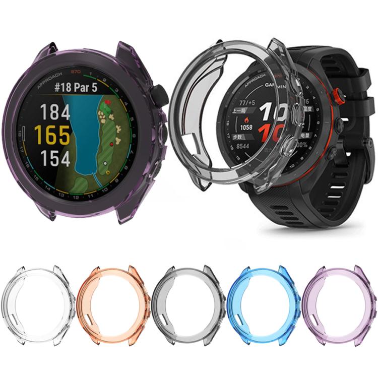 For Garmin Approach S70 47mm Half Coverage Hollow TPU Watch Protective Cover(Transparent Blue)