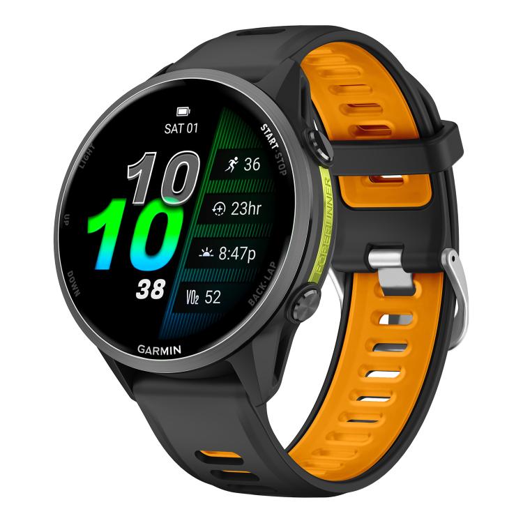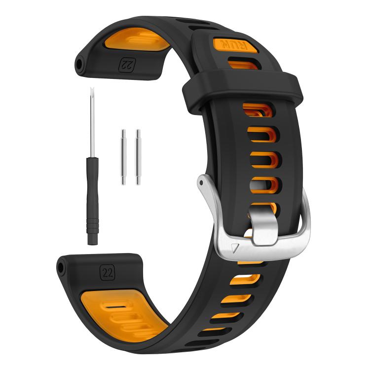 For Garmin Forerunner 970 Silver Buckle Two Color Silicone Watch Band(Black Orange)