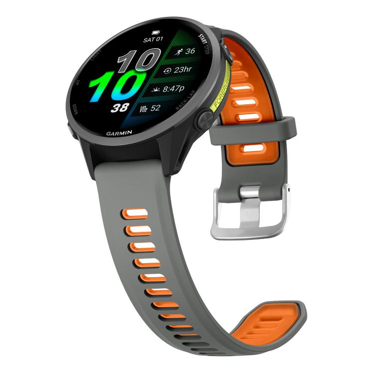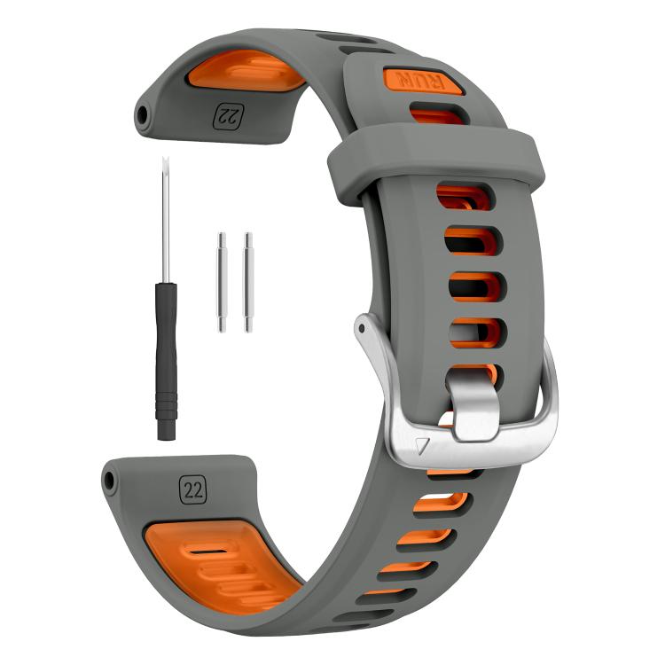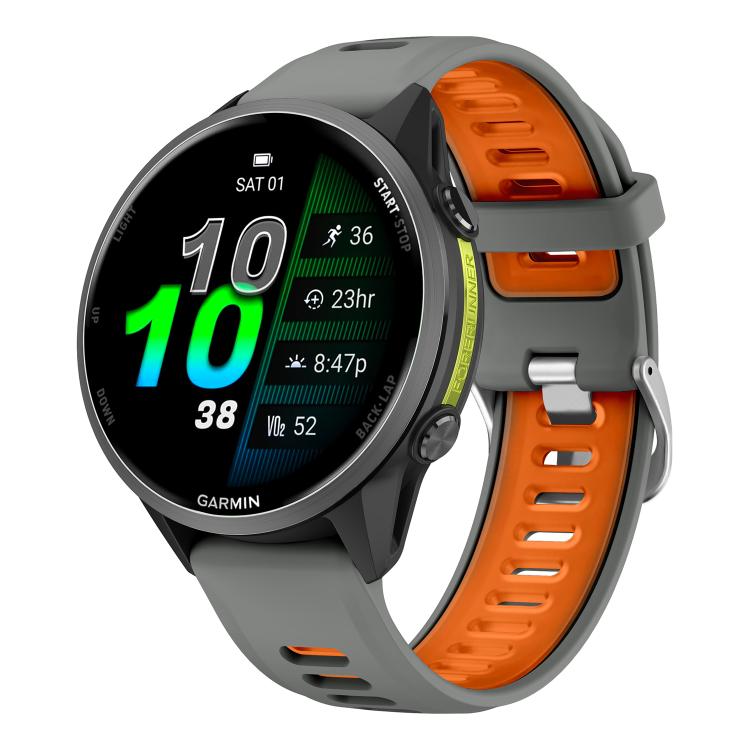 For Garmin Forerunner 970 Silver Buckle Two Color Silicone Watch Band(Space Grey Orange)