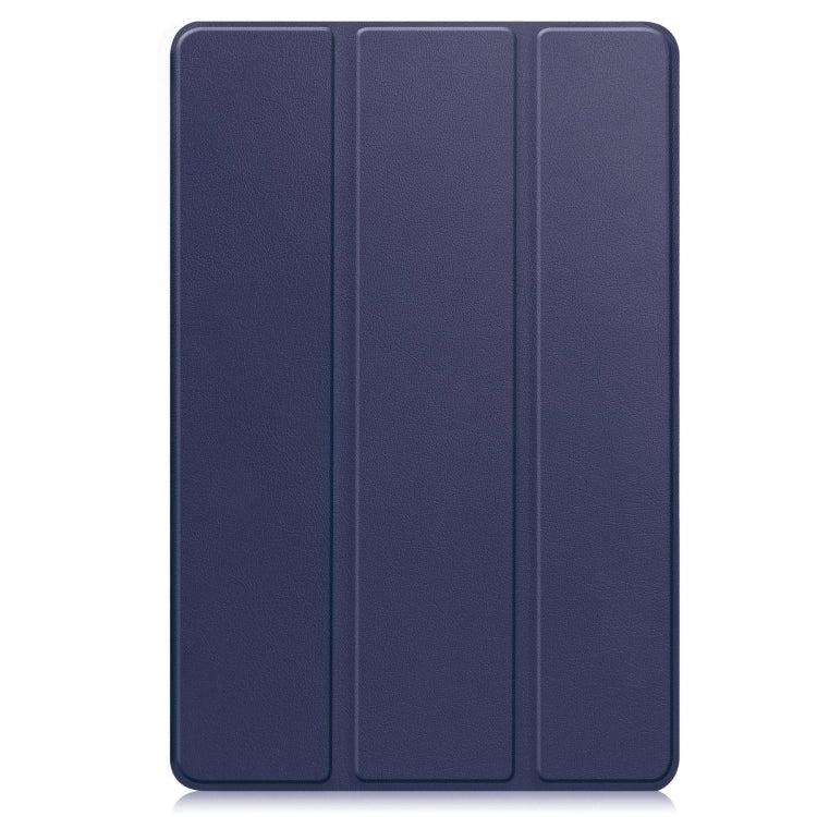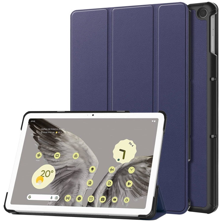 For Google Pixel Tablet Custer Pure Color 3-Fold Holder Smart Leather Tablet Case(Dark Blue)