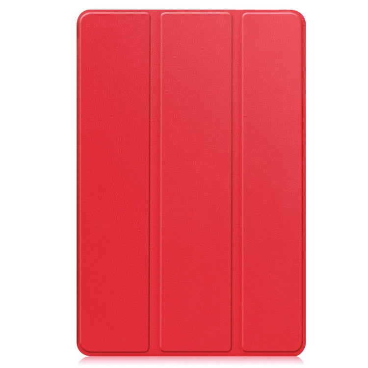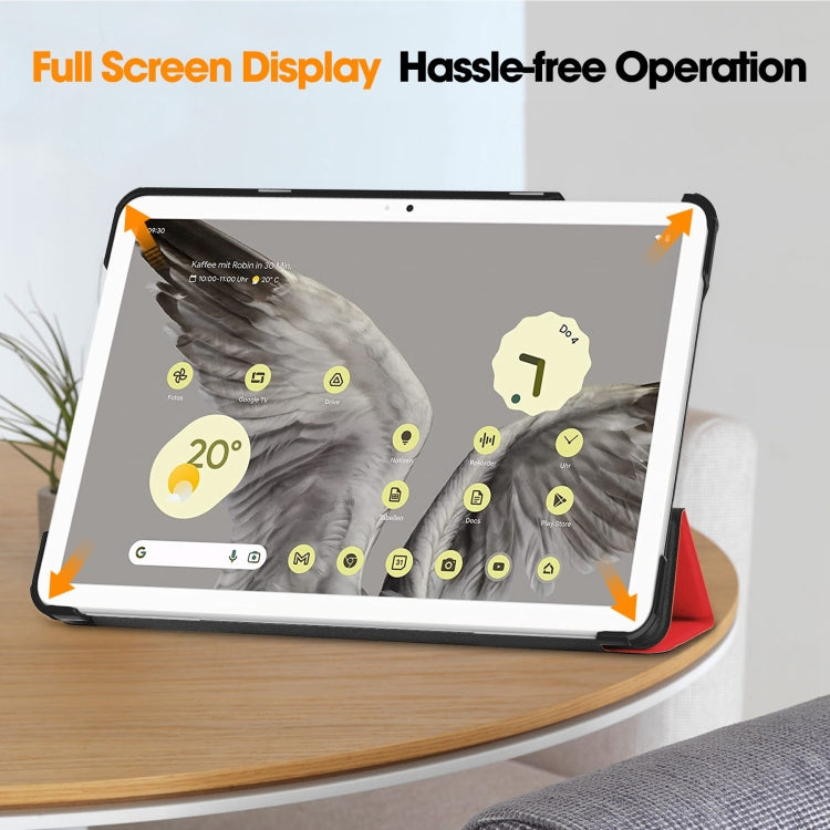 For Google Pixel Tablet Custer Pure Color 3-Fold Holder Smart Leather Tablet Case(Red)
