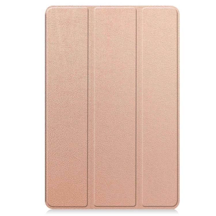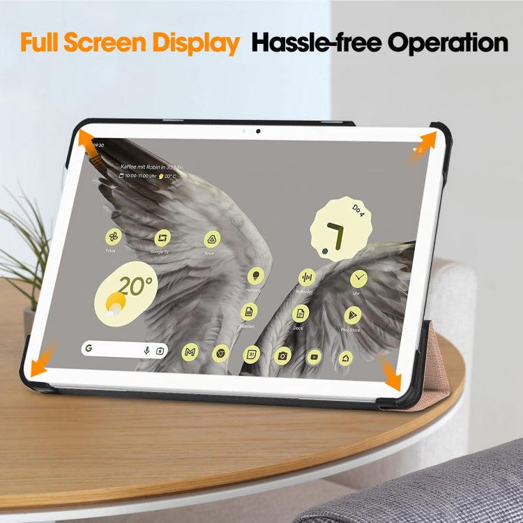For Google Pixel Tablet Custer Pure Color 3-Fold Holder Smart Leather Tablet Case(Rose Gold)