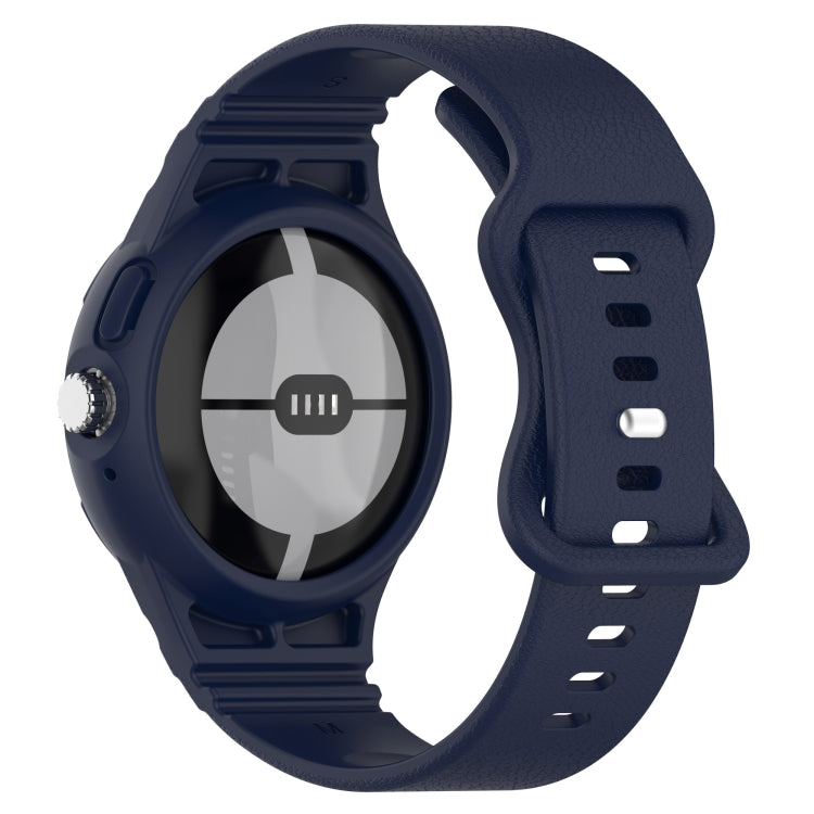 For Google Pixel Watch Leather Texture Silicone Integrated Watch Band(Dark Blue)