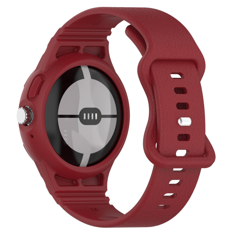 For Google Pixel Watch Leather Texture Silicone Integrated Watch Band(Wine Red)