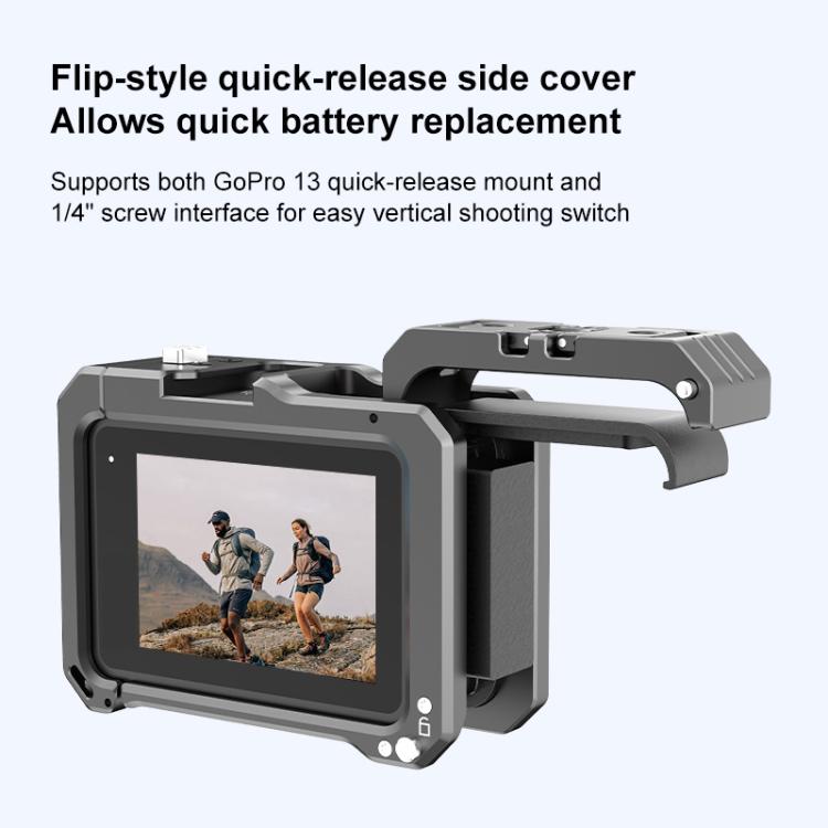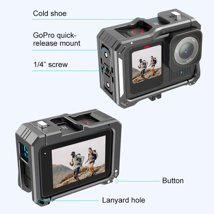 2. Double Cold Shoe Holder: The cage comes with a cold shoe bracket on the upper and side, which can be compatible with GoPro lighting module and microphone, LED video light at the same time.