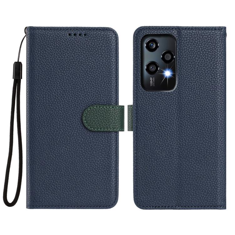 For Honor 200 Lite Global Detachable Litchi Texture Magnetic Vegan Leather Phone Case(Dark Blue+Dark Green)