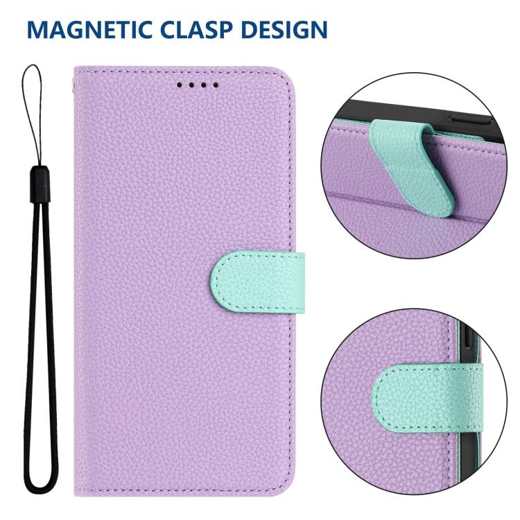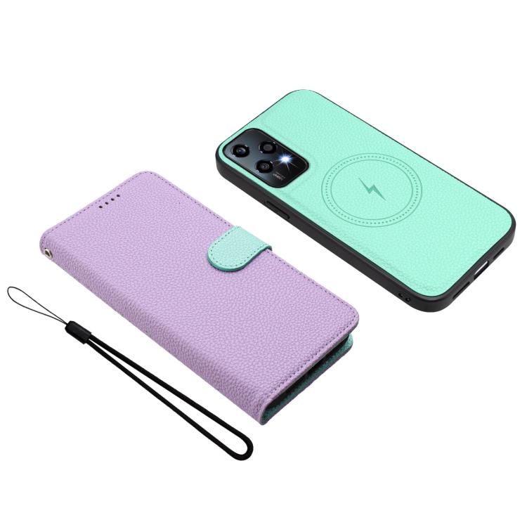 For Honor 200 Lite Global Detachable Litchi Texture Magnetic Vegan Leather Phone Case(Purple+Mint Green)