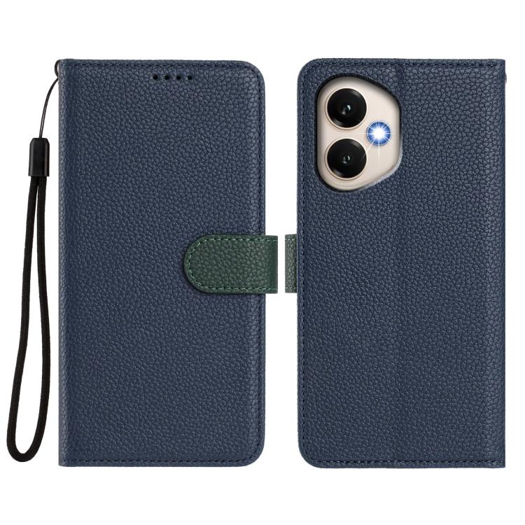 For Honor 400 Global 156.5mm Detachable Litchi Texture Magnetic Vegan Leather Phone Case(Dark Blue+Dark Green)