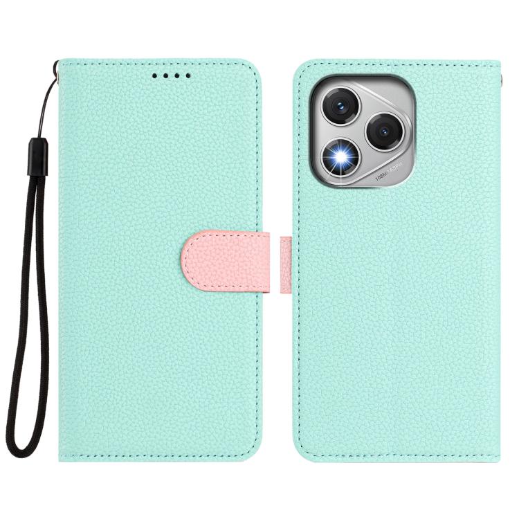 For Honor 400 Lite Global Detachable Litchi Texture Magnetic Vegan Leather Phone Case(Mint Green+Pink)